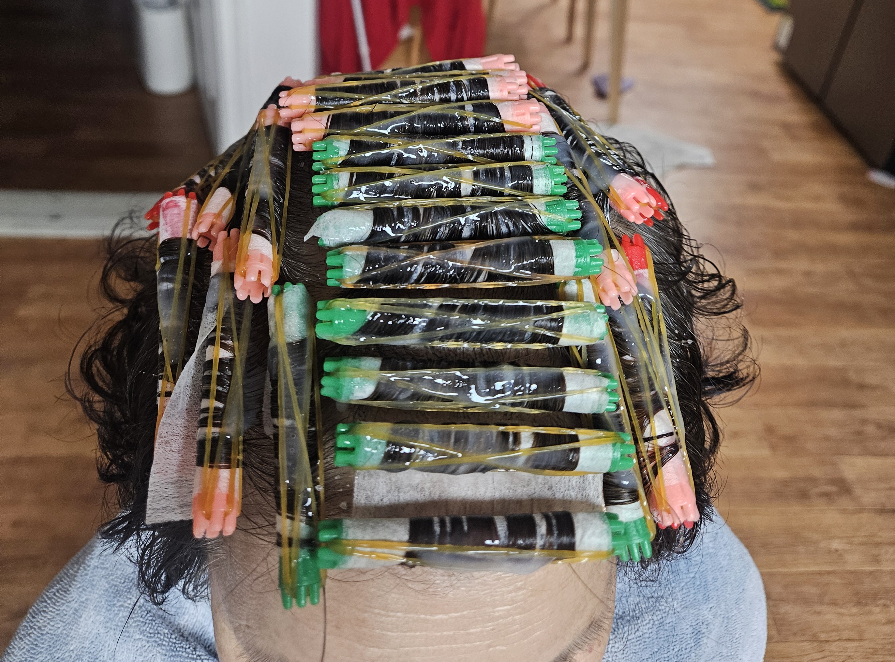 롯드를 하나하나 정성껏 말고 약을 바르면서